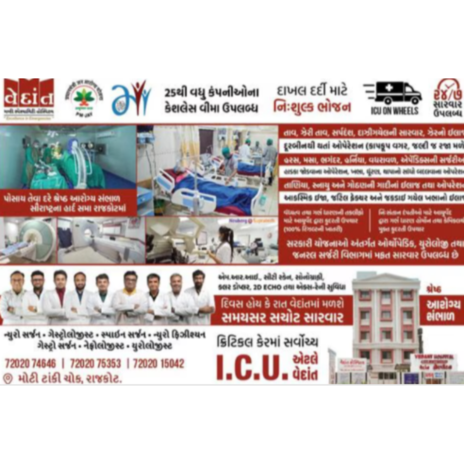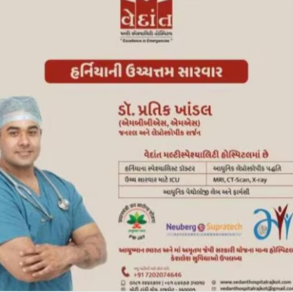 Address: | VEDANT HOSPITAL MOTI TANKI CHOWK RAJKOT 360001 |